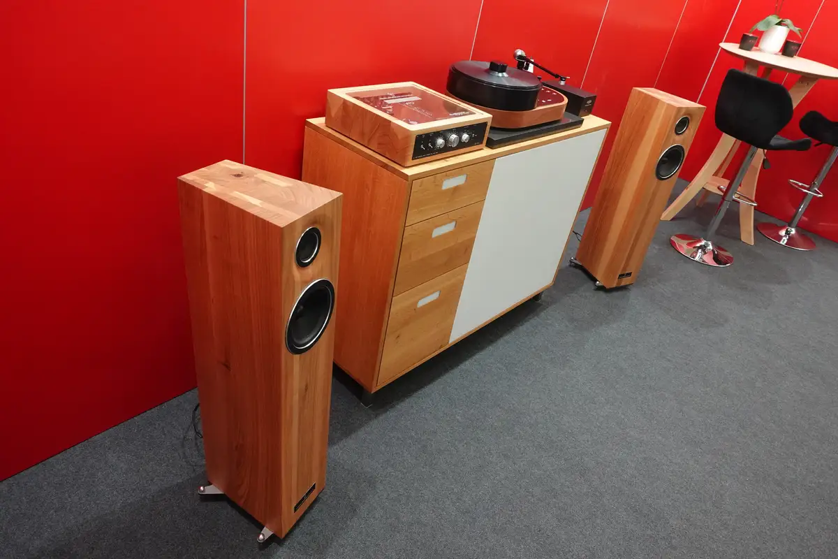 Lautsprecher, Verstärker und Plattenspieler aus fränkischem Kirschbaum – alles im Highend
