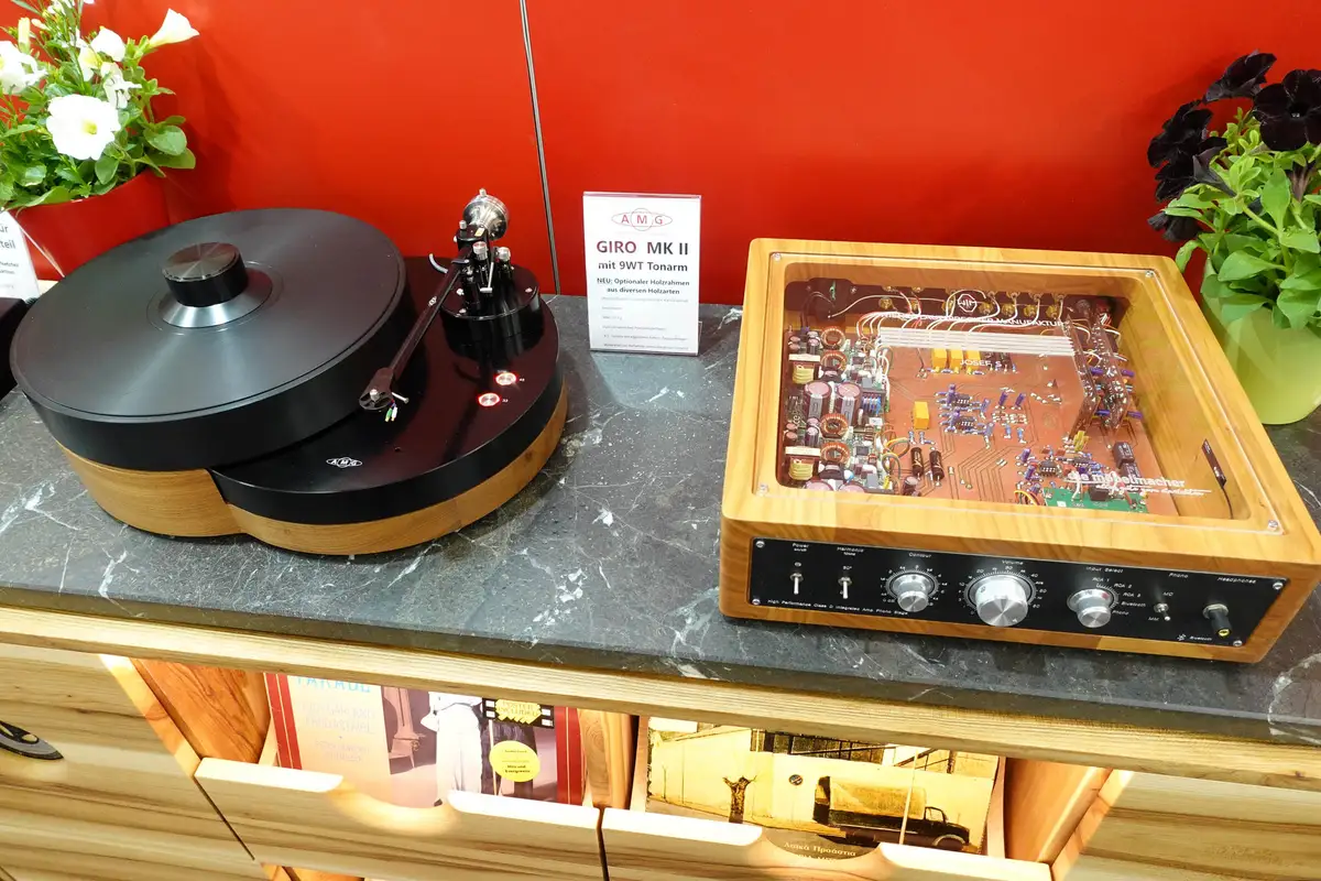 Im Jahr 2023 war der Plattenspieler Viella der Analog Manufaktur Germany (AMG) mit unserer Holzchassis aus fränkischem Kirschbaum erstmals auf der High End zu sehen, zusammen mit dem Verstärker Josef S und den Standboxen Ella und Ella Monitor der Wiener Lautsprechermanufaktur (WLM). In diesem Jahr zeigen wir zusätzlich den Plattenspieler Giro mit Holzchassis in Kirschbaum und Rüster (so heißt das Holz der Ulme) und das neue Schallplatten- und Hifimöbel aus Rüster.