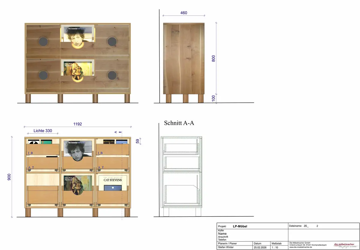 Aus diesem Schallplattenschrank haben wir am Telefon für Kunden aus Chemnitz gleich eine neue Variante als Kombination mit dem ersten Schrank dieser Seite entworfen: