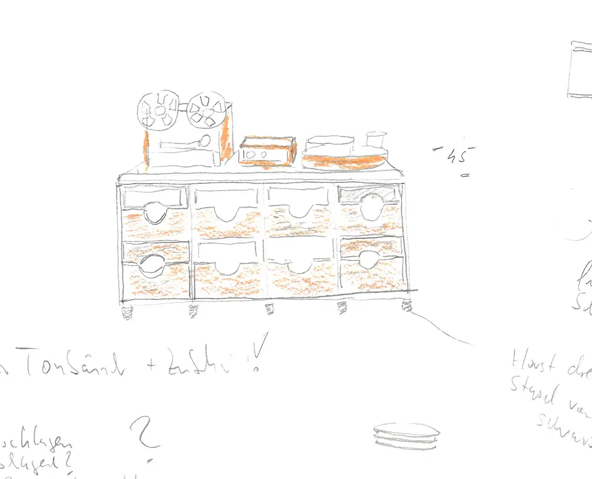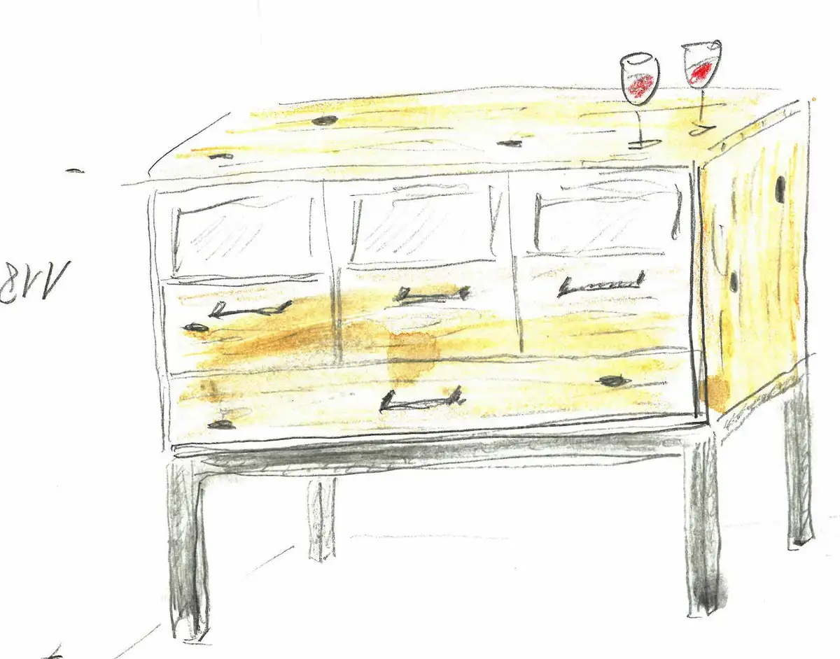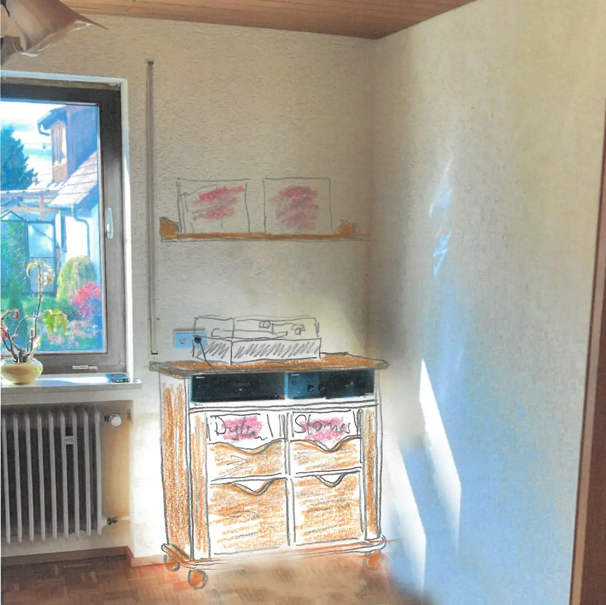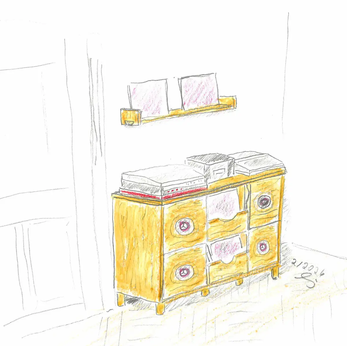 Der erste Gedanke für den neuen Schallplattenschrank als Skribble