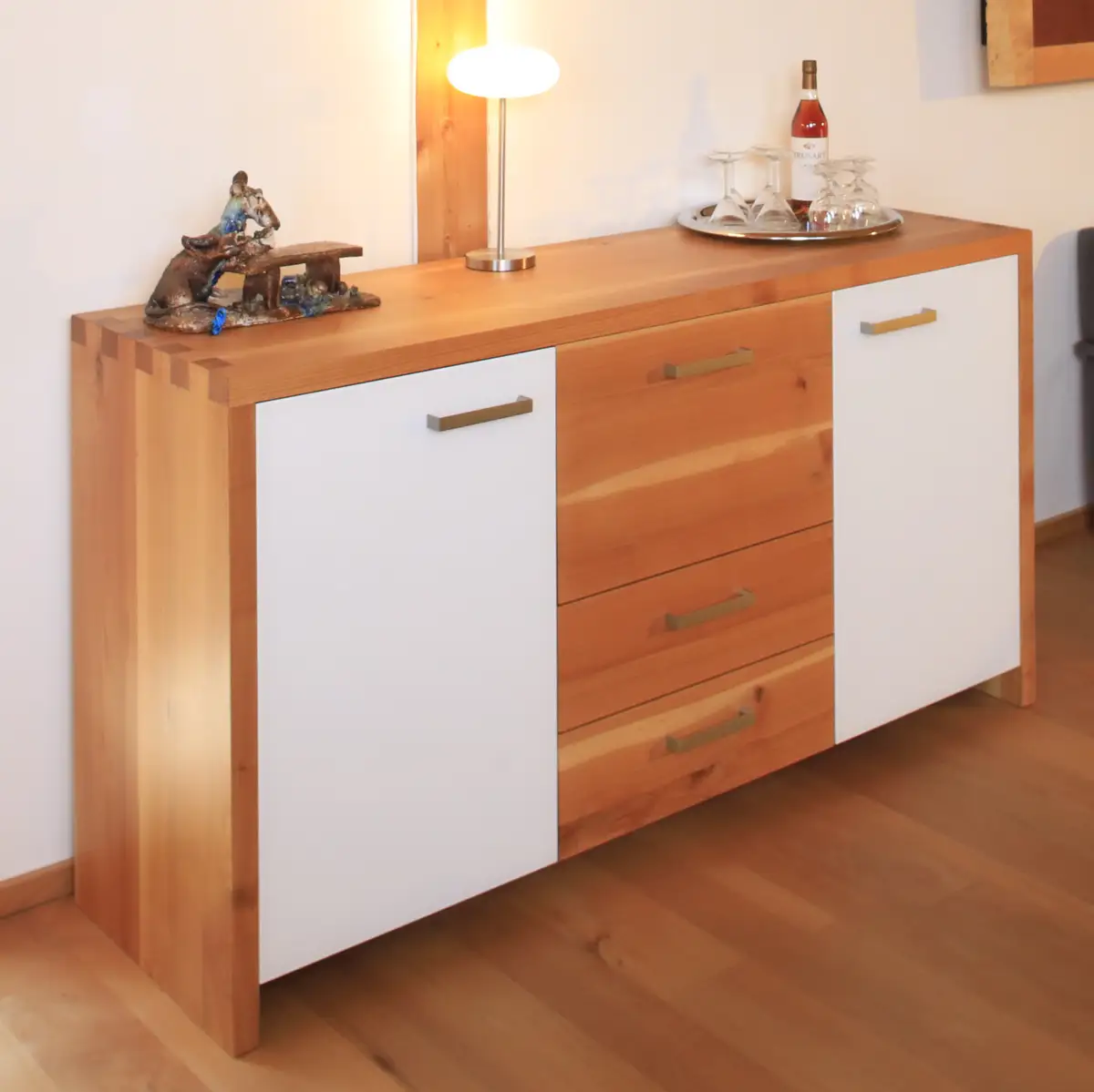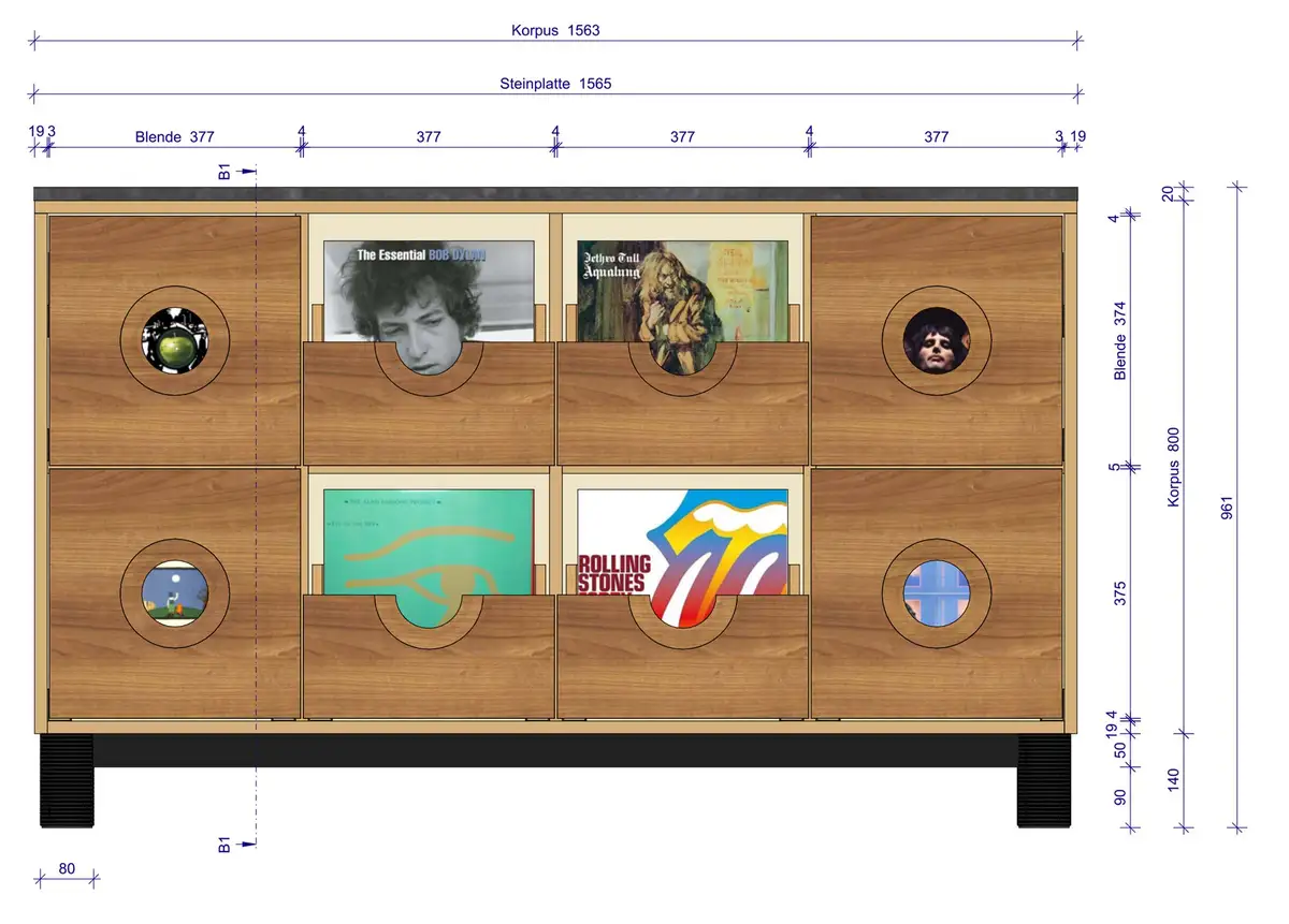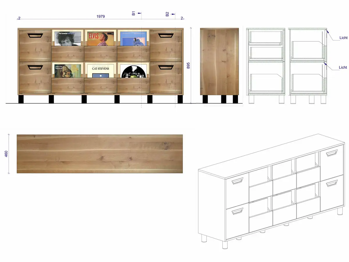 Das ist der originale Plattenschrank, den wir mit Photoshop in das Barschrank-Sideboard montiert haben, auf dass sich unser Kunde vorstellen kann, wie die Kombination mit einem gezinkten vier Zentimeter dicken Korpus aussehen würde