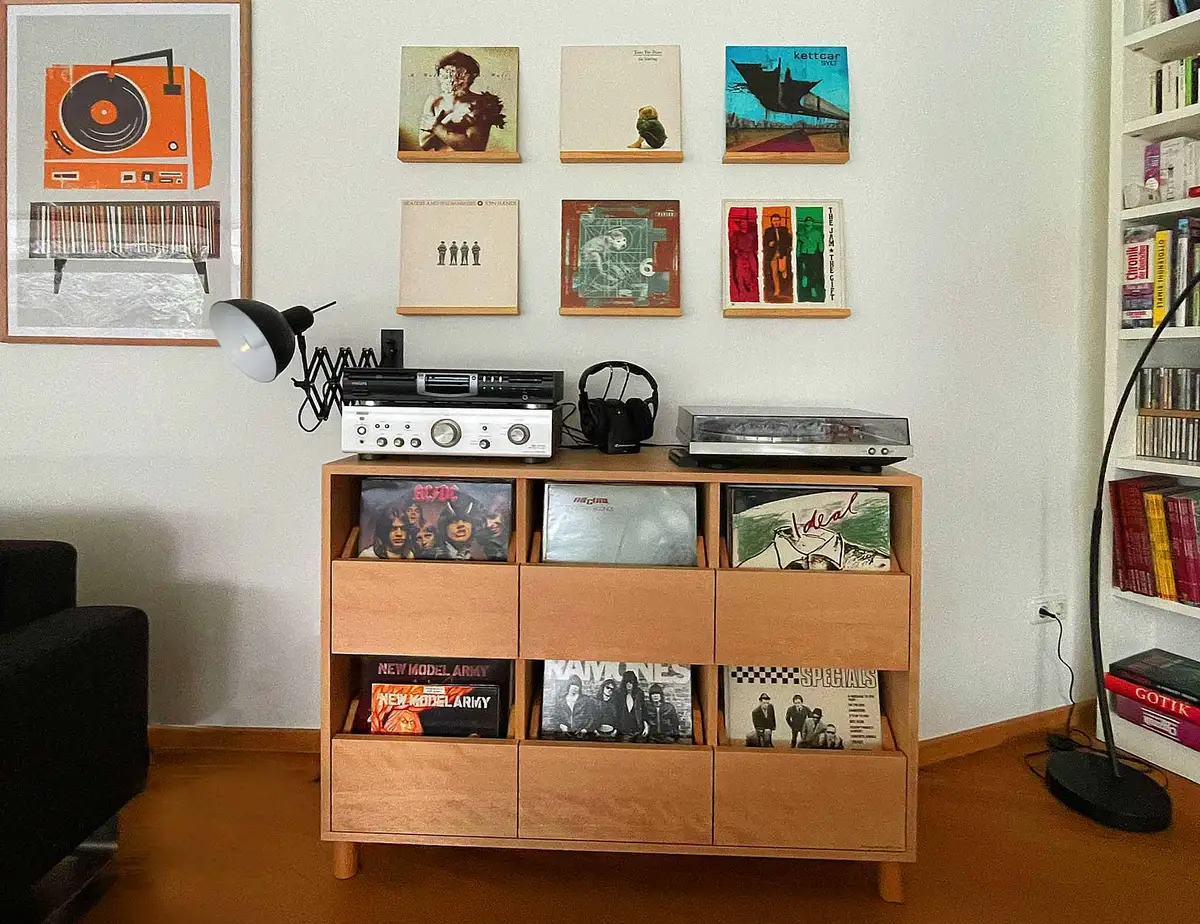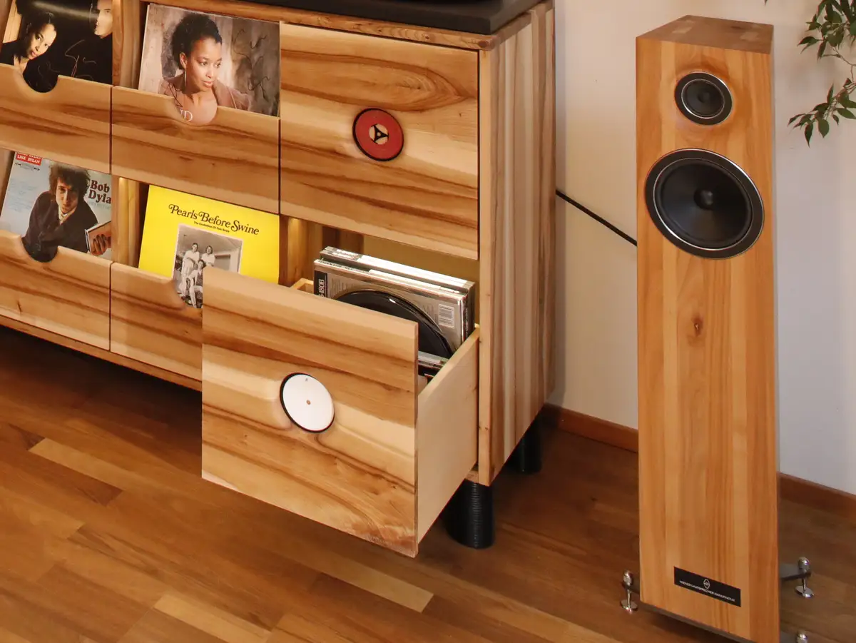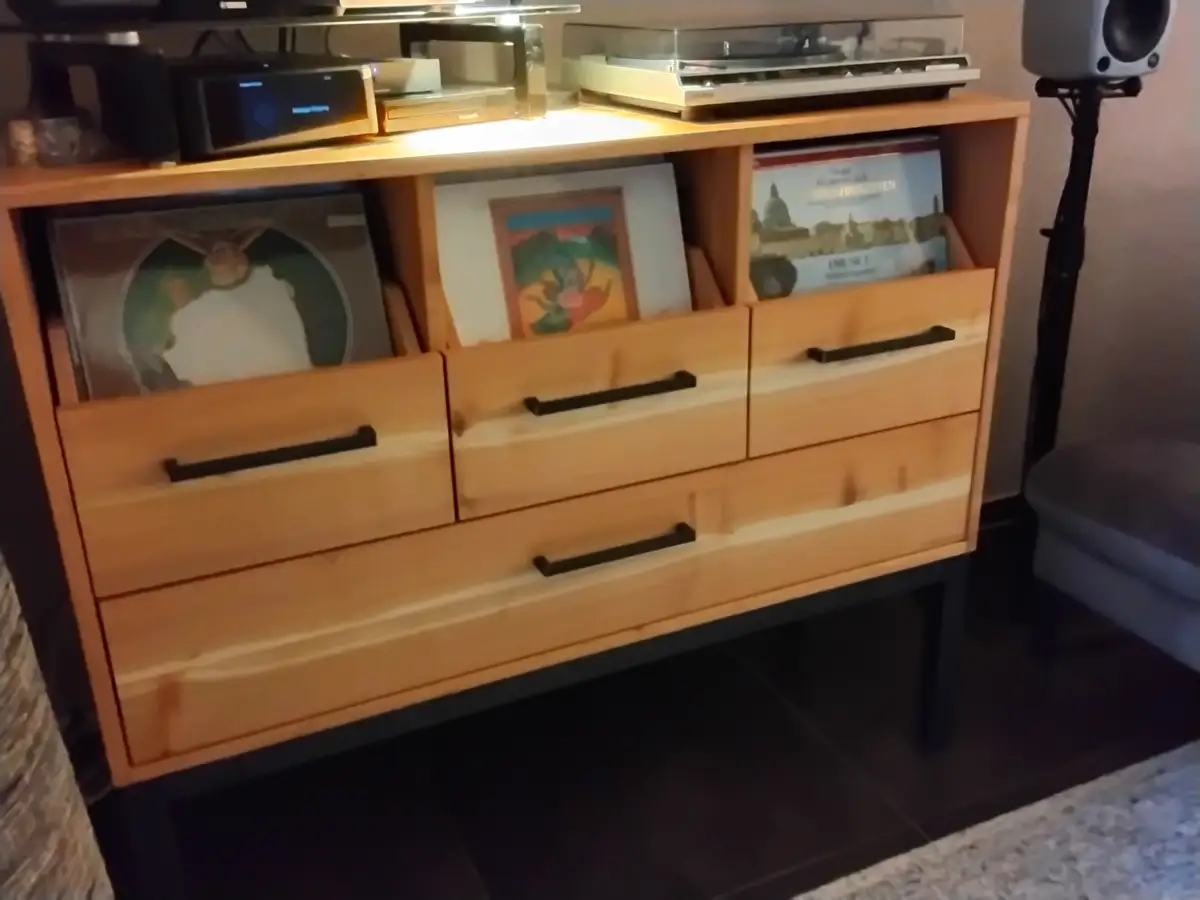 Schallplattenschrank mit Schubladen für das perfekte Blättern nach der besten Musik
