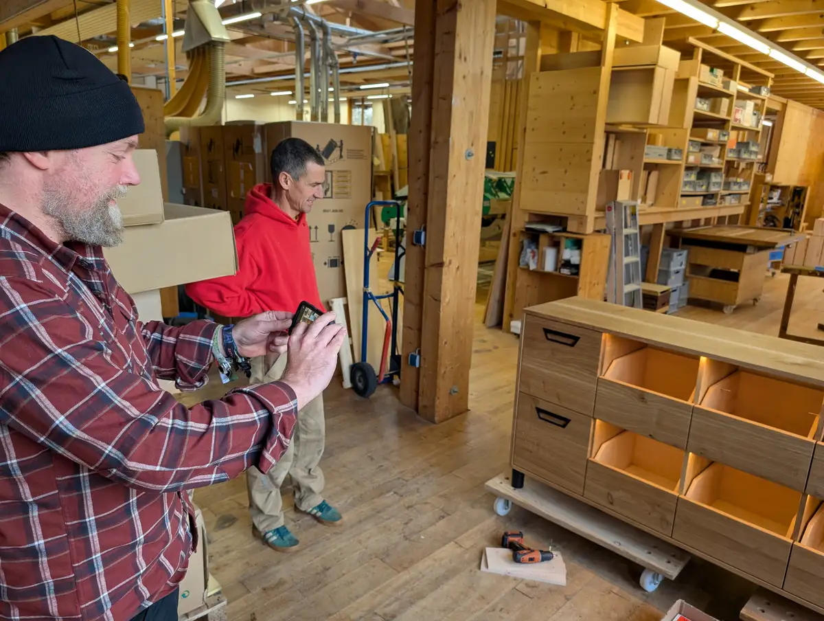 Unser Kunde holt den Schrank zusammen mit einem Freund ab