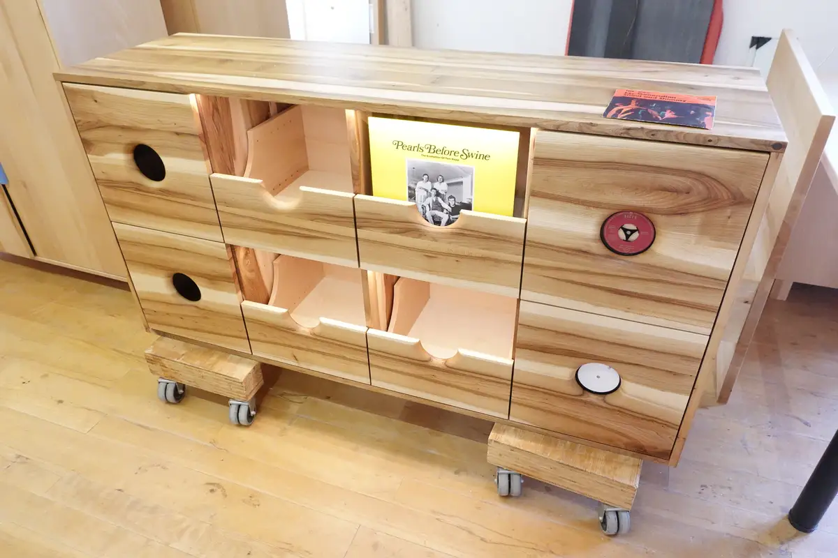 So entstand der Schallplattenschrank von der Idee bis zur Messe und vom Baum bis zum Möbel