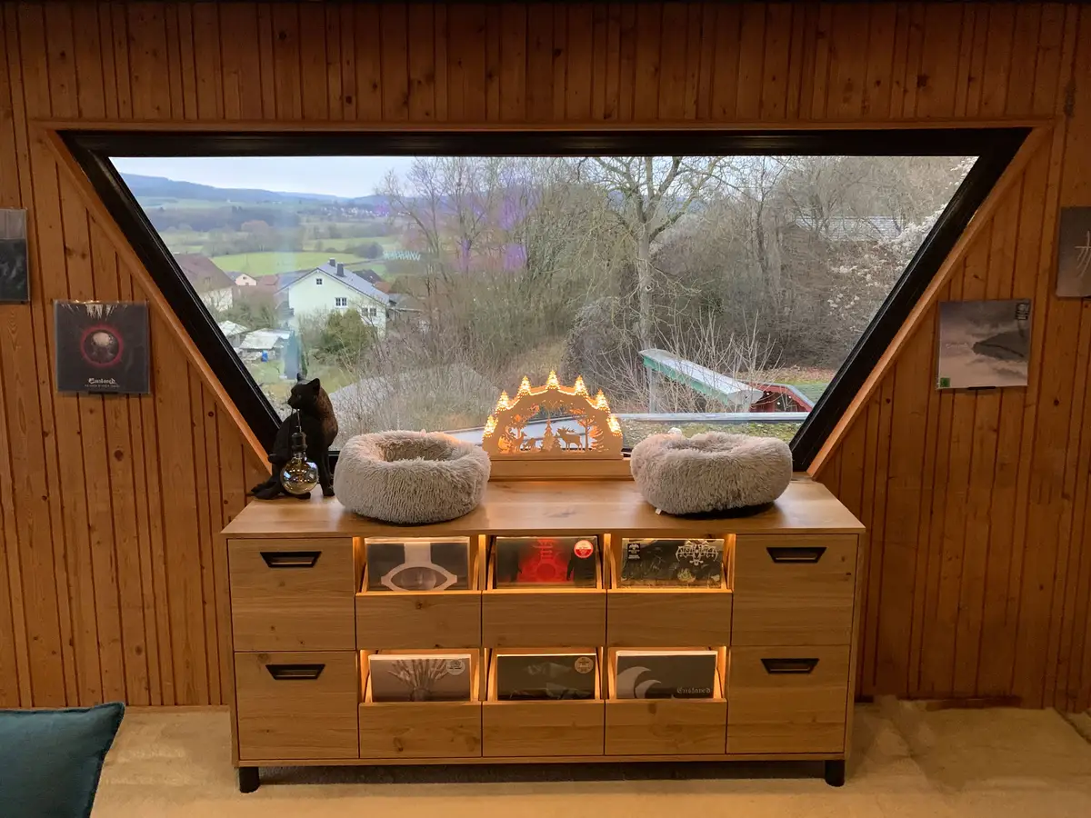 Schallplattenschrank passend zum Panoramafenster
