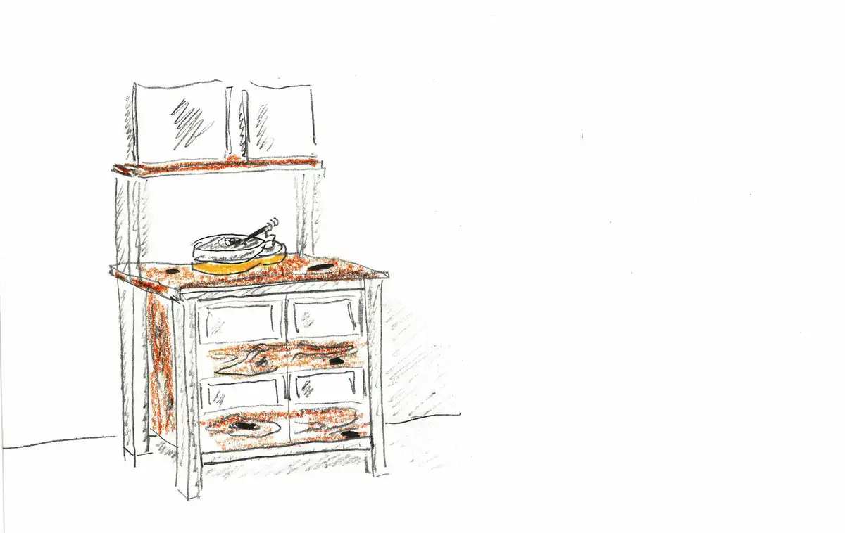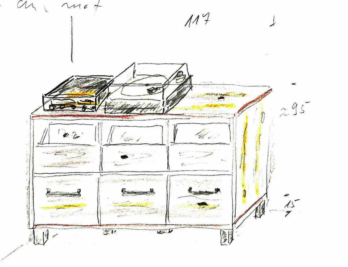 Die technische Zeichnung des LP-Schrankes nach dem Skribble