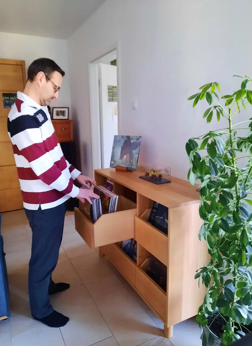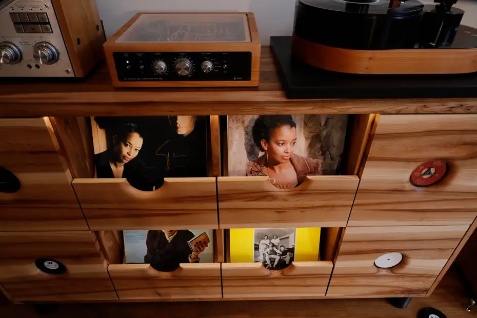 Auch die unteren Schallplattenschubladen lassen sich komfortabel erreichen