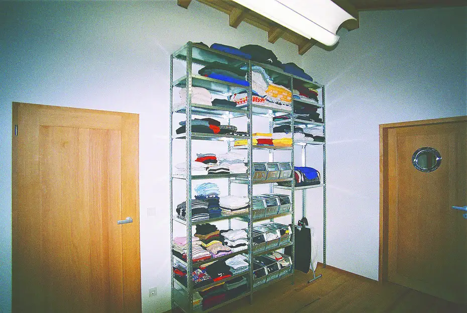 Über viele der Einrichtungen im regionalen Musterhaus gibt es auf den Spezialseiten schon Beiträge, diese Seite hier soll vor allem zeigen, wie die Möbel nach 24 Jahren aussehen. Den seit dem Jahr 2000 waren sie noch auf einigen Messen im Einsatz, ehe sie im regionalen Musterhaus montiert und seit Ostern 2002 dort täglich im Einsatz sind.