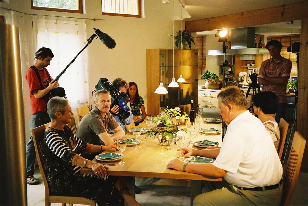 Das Küchenfoto in unserer Ausstellung aus dem Jahr 2000 ganz oben ist dem von 2024 ganz unten recht ähnlich, nur kam in diesen Jahren noch ein Mensch dazu, zu dessen Kochkursen für die französische Küche im Jahr 2035 wir schon heute einladen.