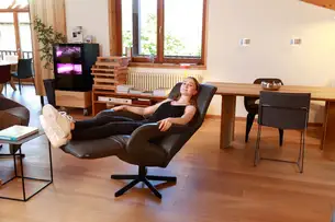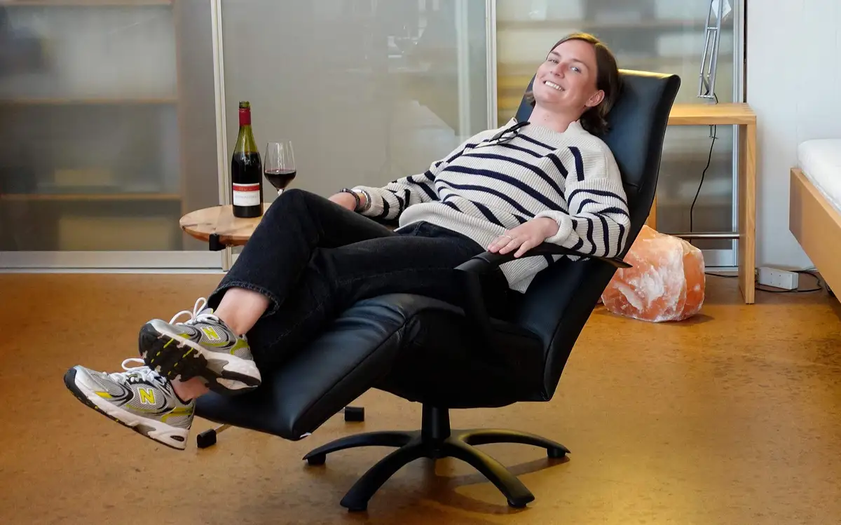 Unser neuer Sessel Symphony von @jorifurniture wurde mit dem Bioleder Ecopell falschrum bezogen. Velourleder heißt das dann und ist das anschmiegsamste Leder, das man sich vorstellen kann. "Richtigrum ist nur die Rückseite, das Kissen und die Armlehnen gepolstert, das heißt dann Nappa-Leder. Aus der Ausstellung kann man ihn zum Sonderpreis bekommen.