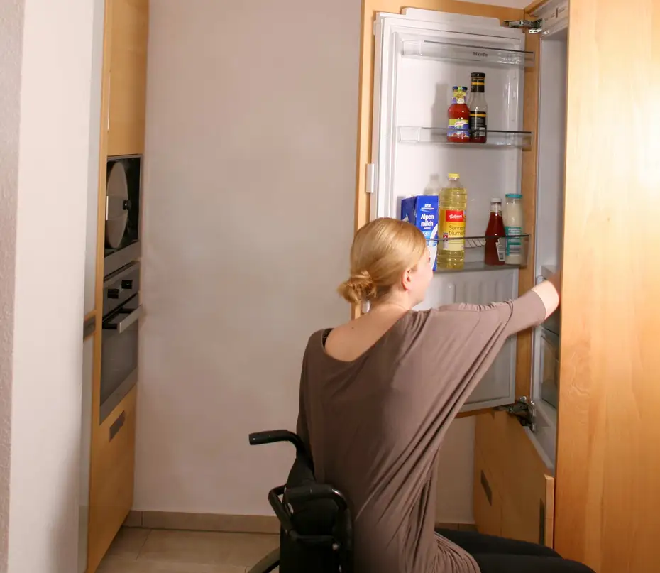 Die Küchenmaschine und der Kühlschrank optimiert für Rollstuhlfahrer