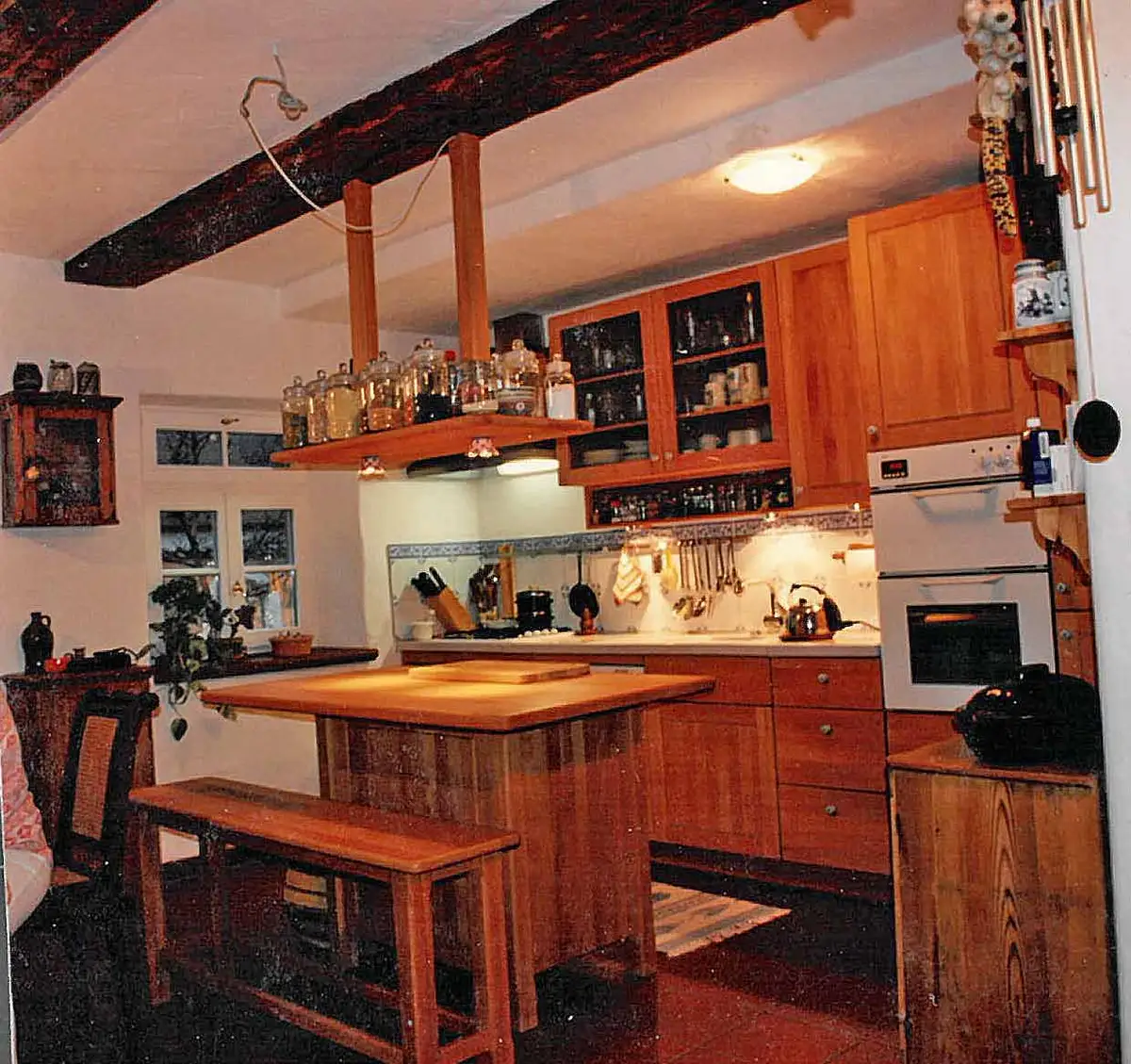 Unsere Massivholzküchen entstehen in Einzelanfertigung, weshalb wir prinzipiell stilistisch völlig offen, nur qualitativ etwas verbohrt sind, da machen wir nämlich keine Abstriche. Wenn das Landhaus ihre bevorzugte Stilrichtung ist, bekommen die Türchen meistens Rähmchen und Applattungen (leichte Schrägen), die Oberschränke bekommen Baldachine oder Profilleisten und der Griff wird heimelig. Weil das auf unserer chronologischen Anordnung unserer Küchen nicht so ganz leicht zu entdecken ist, haben wir hier ein paar Beispiele für Sie zusammengestellt, gerne mailen wir Ihnen auch noch einen Link zur größeren Datenbank, wenn Sei uns eine Mail schreiben.