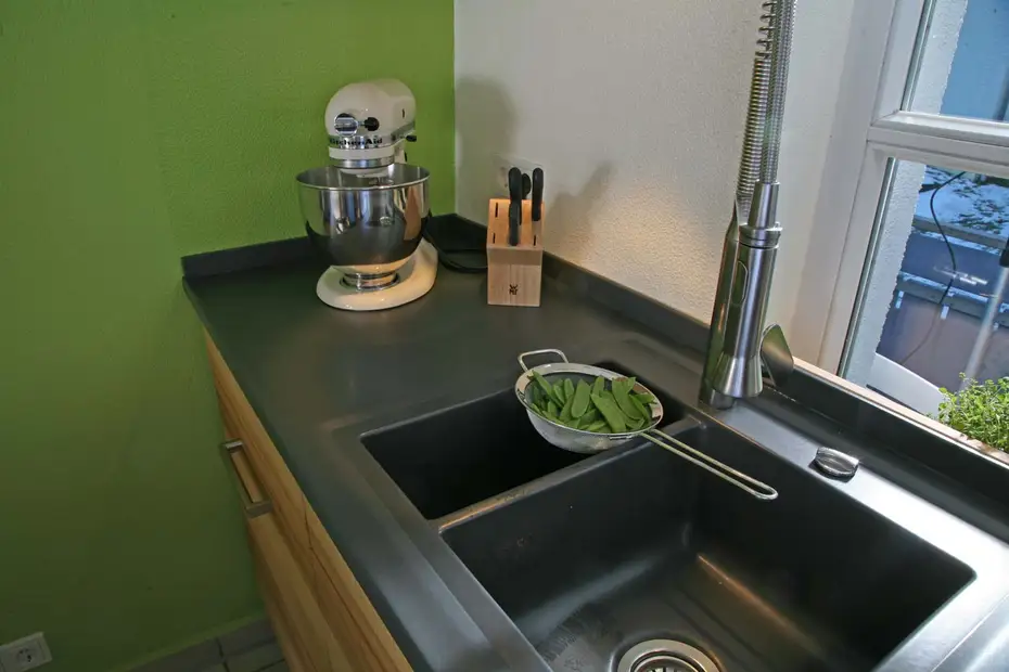 In der alten Küche war die Spüle an der Wand.