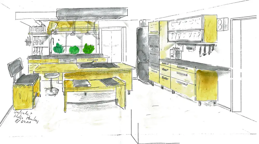 So sehen unsere Küchenentwürfe aus. Sie entstehen meist während des ersten Gesprächs