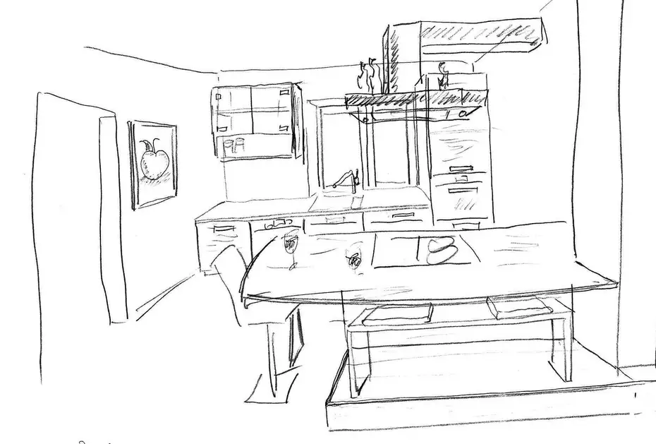 Während des gemeinsamen Kochens und Planens entstehen erste Skizzen der späteren Küche.