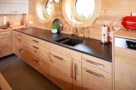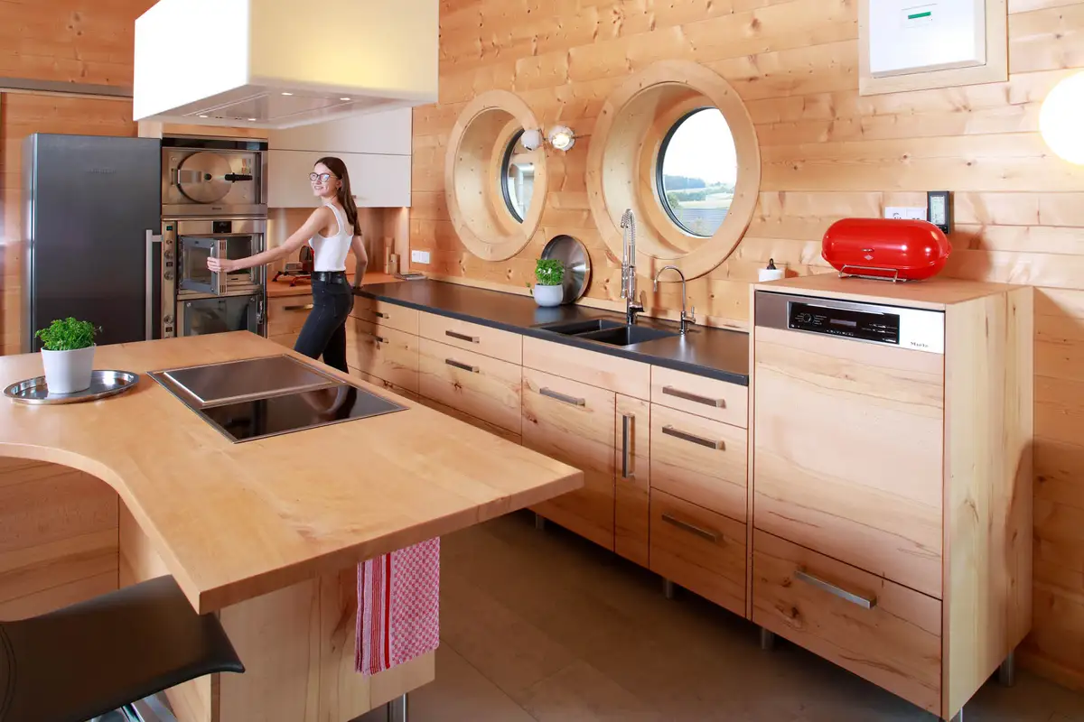 Die Massivholzküche aus fränkischer Buche im Blockhaus