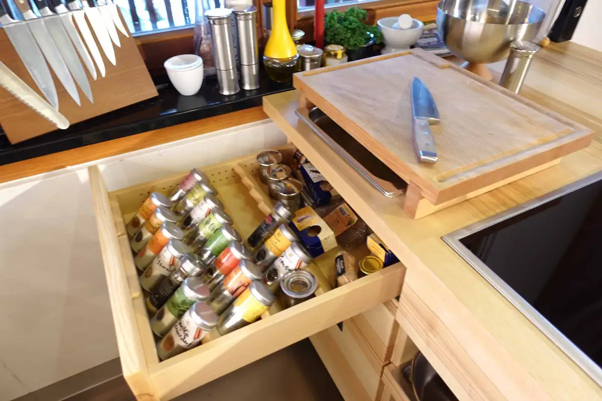 Schräge Schubladeneinteilung speziell für Sonnentor-Gewürze