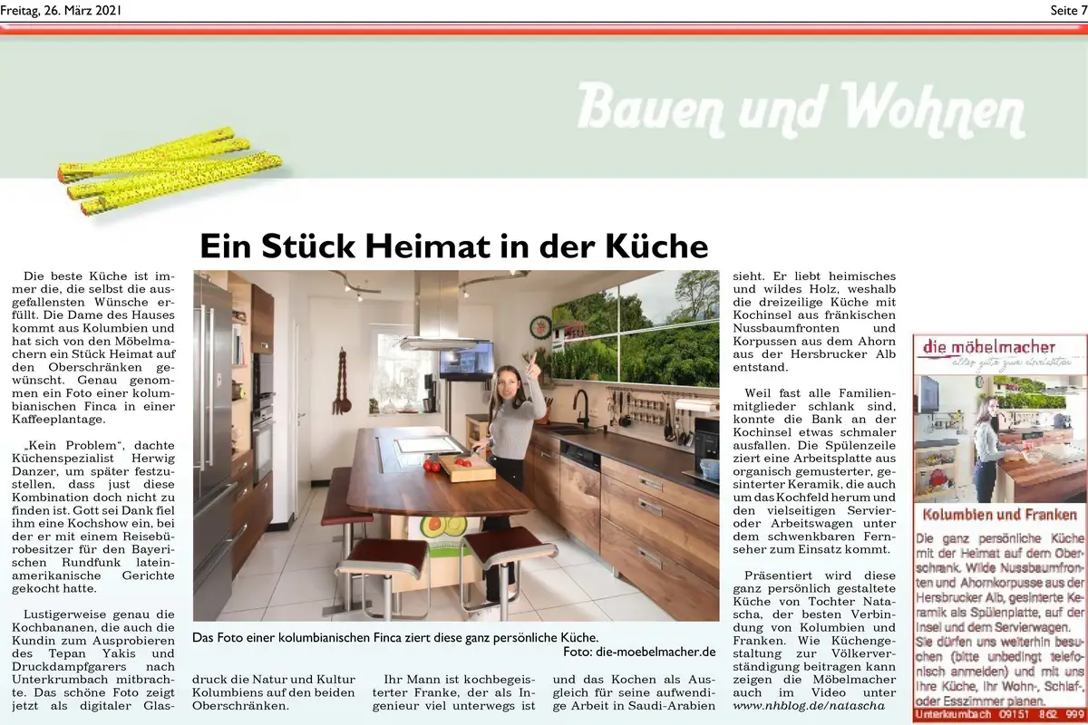 Nuuuur in Unterkrumbach gibt es Küchen, die ganz individuell auf die Wünsche der Kunden eingehen: das Bild aus Kolumbien, das Holz aus Franken und Tochter Natascha verkörpert das Beste aus beiden Welten