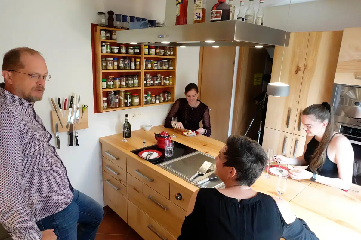 wir möchten uns bei Ihnen ganz herzlich für unsere supertolle neue Küche bedanken! Sie konnten uns wirklich von vielen Änderungen in der Anordnung der Möbel und bei den Geräten überzeugen – wir hatten ja schnell das Gefühl, dass wir Ihnen vertrauen sollten, und das hat sich vollumfänglich bewahrheitet. Wir sind fasziniert von der Qualität jedes Einzelteils und vom Gesamtbild der Küche, Technik und Design gehen hier wirklich Hand in Hand! Man sieht und spürt die Expertise, die Sorgfalt und Liebe zum Detail, die Ihr Team beim Bau jedes Möbelstücks ‚gelebt‘ hat. Ganz besonders beeindruckt hat uns aber das Engagement des Montageteams Moritz Meier und Peter Schmitt, unterstützt von Stefan Winter, die mit ganz viel Herzblut und technischem Sachverstand alle Pläne umgesetzt und die ungeplanten Hindernisse umschifft haben. Soviel Comittment sieht man echt selten! Wir möchten auch die Unterstützung von Helmut Neugebauer sehr loben – ohne seine Genauigkeit und Geduld hätte dieses Projekt nicht gelingen können. Und ein großes Danke an alle Ihre Mitarbeiter, die wir nicht persönlich kennengelernt haben, die aber auch beim Bau der Küche beteiligt waren!