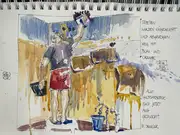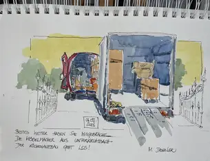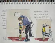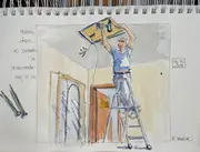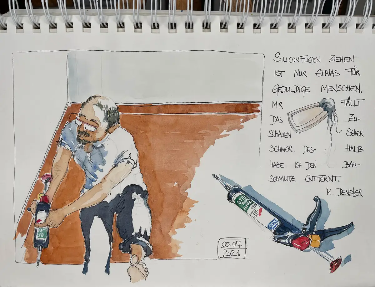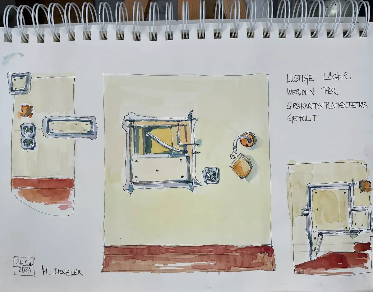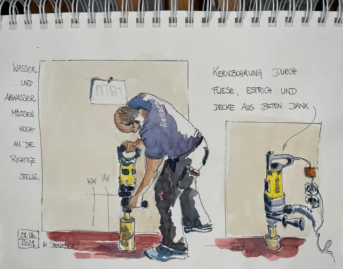 Nein, unser Team musste nicht stundenlang stillhalten, die Zeichnungen entstanden während einer ganz normalen Küchenmontage an zwei Tagen.