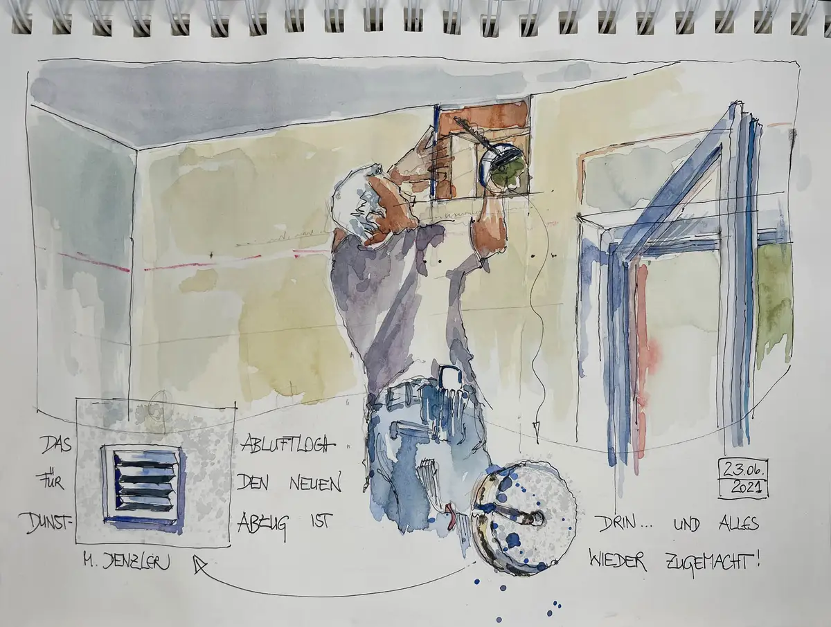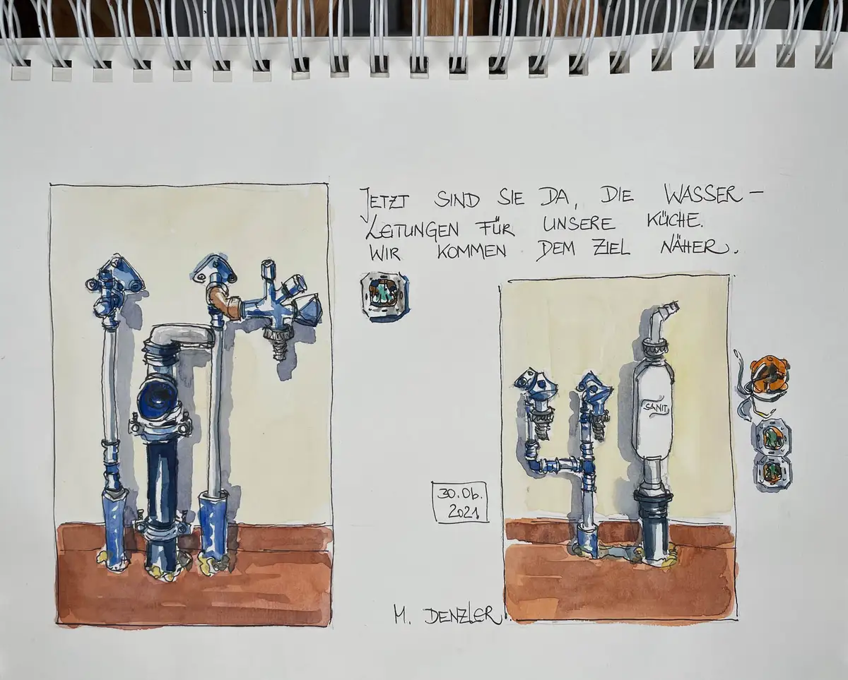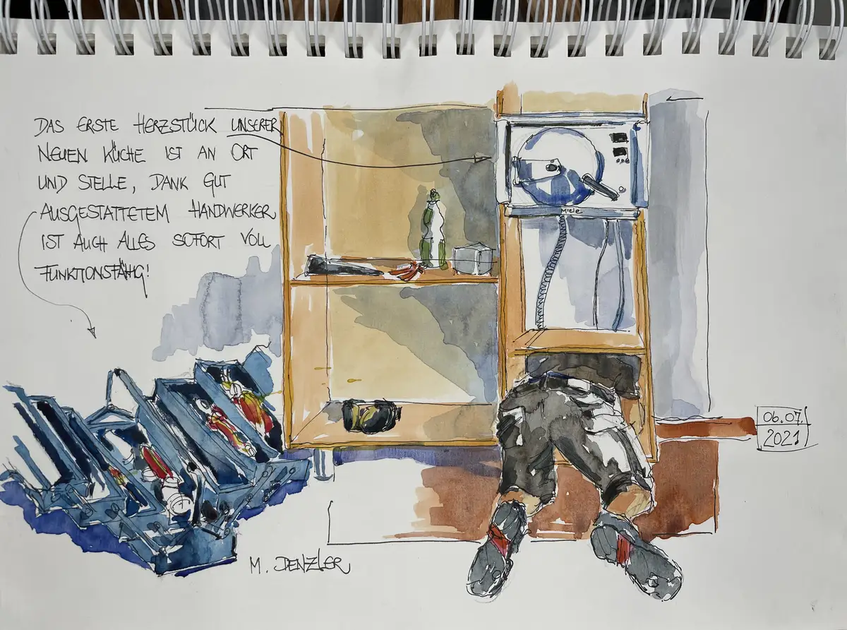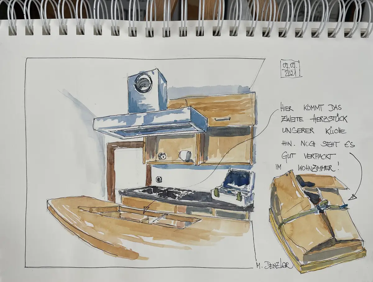 Zum ersten Mal wurde der Küchenaus- und Umbau in Zeichnungen festgehalten