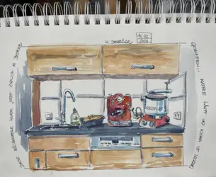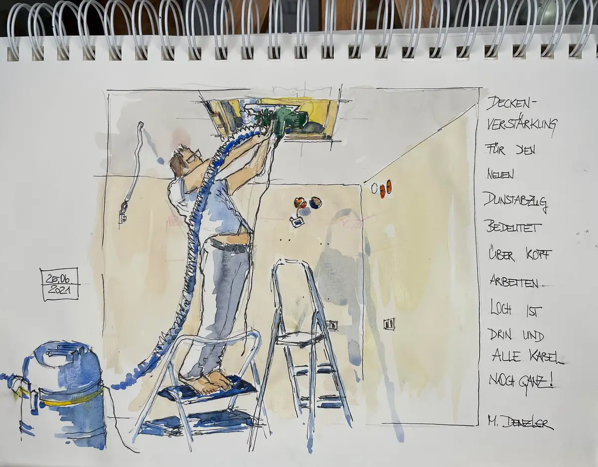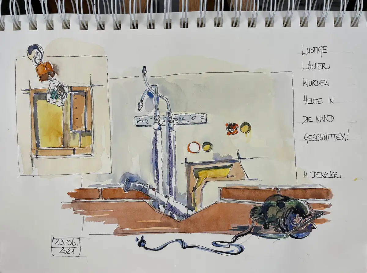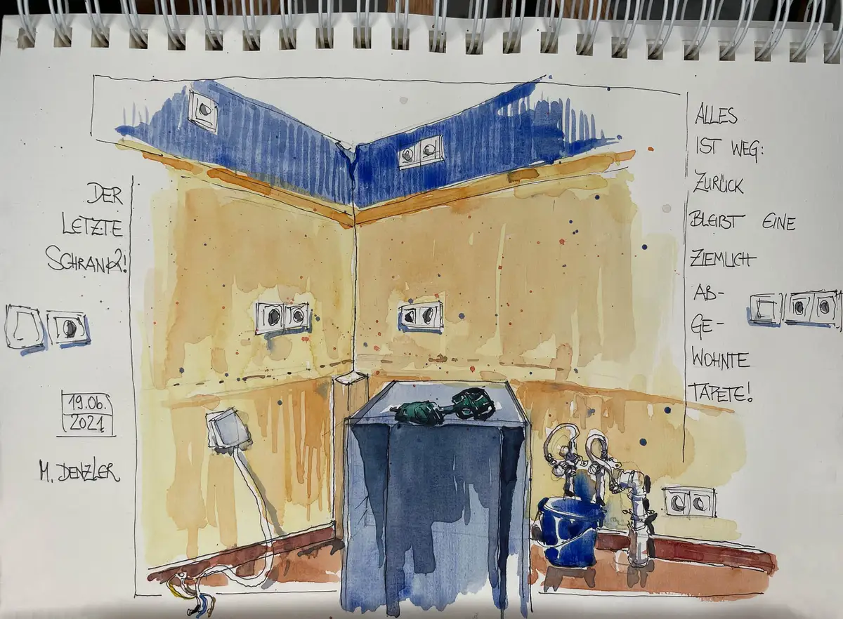 Zum ersten Mal wurde der Küchenaus- und Umbau in Zeichnungen festgehalten