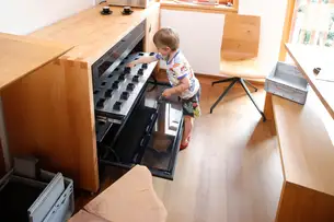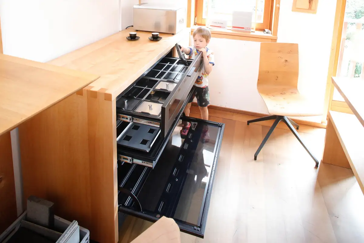 Würde man den Schrank aufschneiden, sähe man die beiden Schubladen und den großen Wassertank, aber besser lässt man ihn ganz