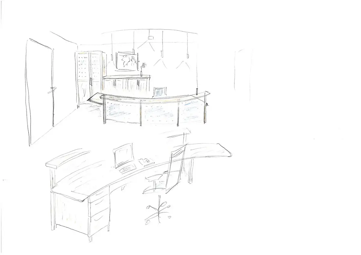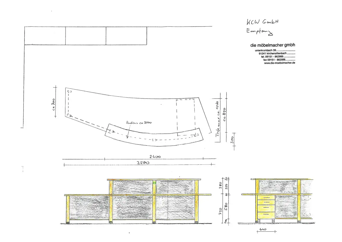 Erste Ideenskizze nach telefonischer Besprechung des Empfangs