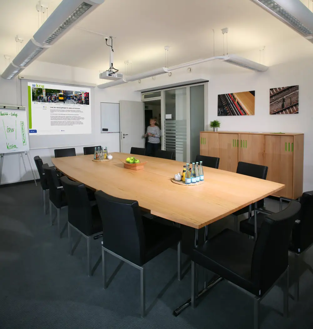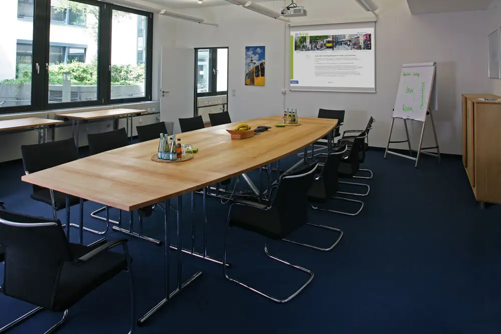 Die beiden Konferenzräume müssen dem Namen nach Konferenzen ermöglichen, gleichzeitig aber auch eine Sitzordnung für Frontalunterricht bei Fortbildungen ermöglichen. Wir konnten zeigen, dass das sogar mit einer