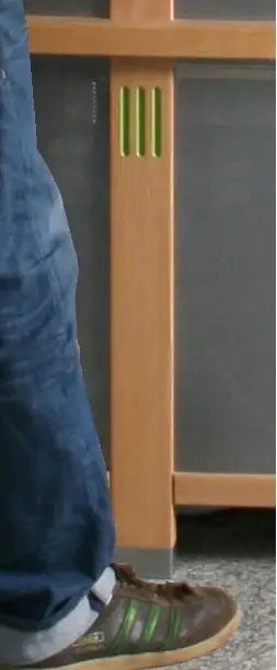 Das Logo von kcw sind drei Streifen, die wir in vielen Möbeln als grüne, bzw. blau colorierte Fräsung aufnahmen