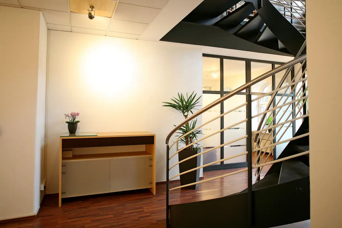 Kaffeebar und Pausenraum, Konferenzräume, Küche, Garderobe und Eingangshalle