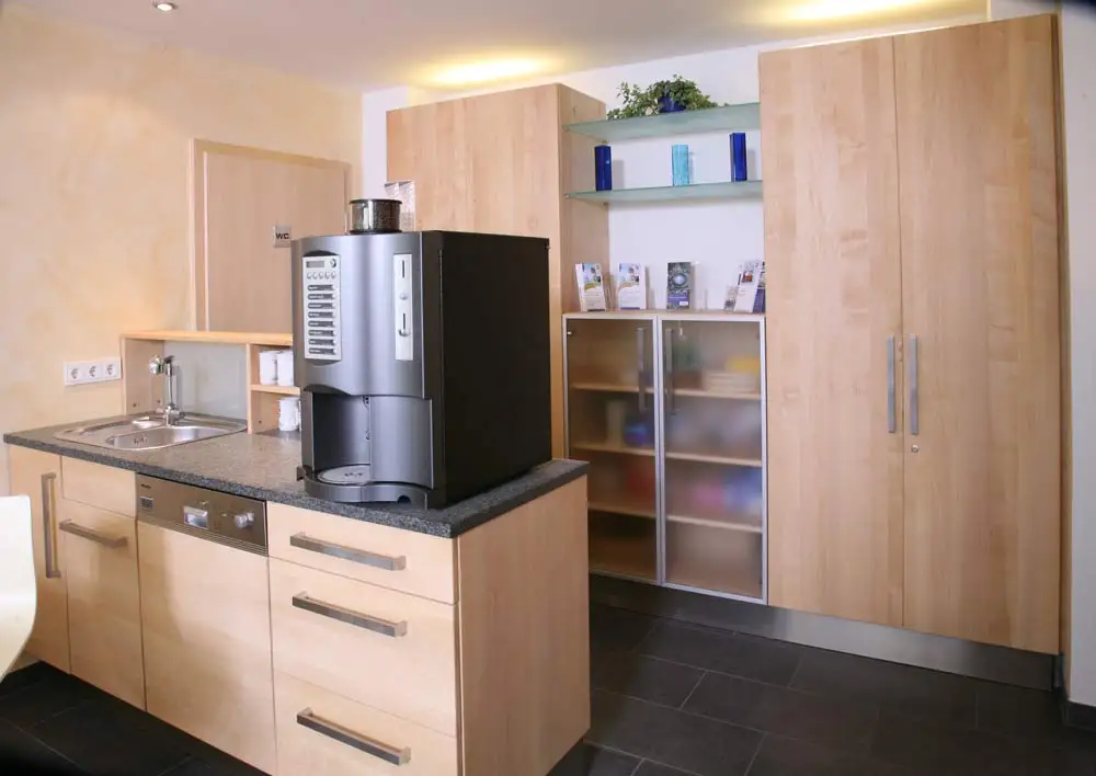 Familie Hense, also Mutter Christa und die beiden Junioren Holger und Heiko, haben mit uns lange an der Idee der Cafeteria gebastelt, bis ein perfektes Konzept entstand. Auf der einen Seite, in der küchenähnlichen Zeile, der komfortable Service mit einem hochmodernen Caffeautomaten, auf der anderen Seite ein Mittelzentrum, an der der Caffe getrunken, gelernt, oder einfach nur mehr oder weniger entspannt diskutiert werden kann. Zum Üben gibt es außerdem zwei CD-Arbeitsplätze mit den Spezialprogrammen für alle Führerscheinklassen und viele echte Relaxinseln auf den Sofas.