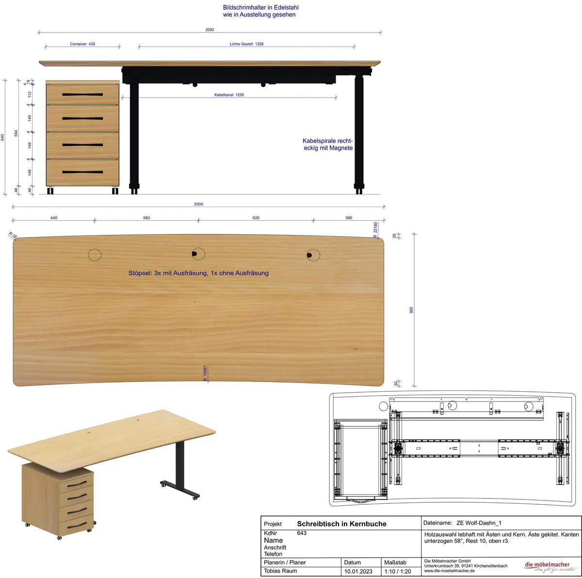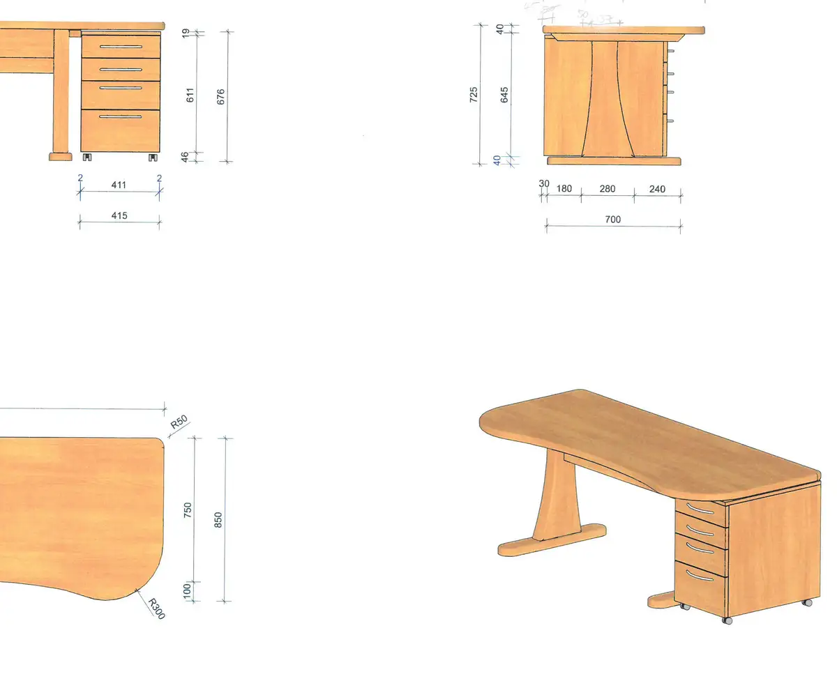 Schritt 3: Anhand einer Zeichnung mit allen Details kann man sich den Schreibtisch gut vorstellen und alle vereinbarten Maße nochmal kontrollieren