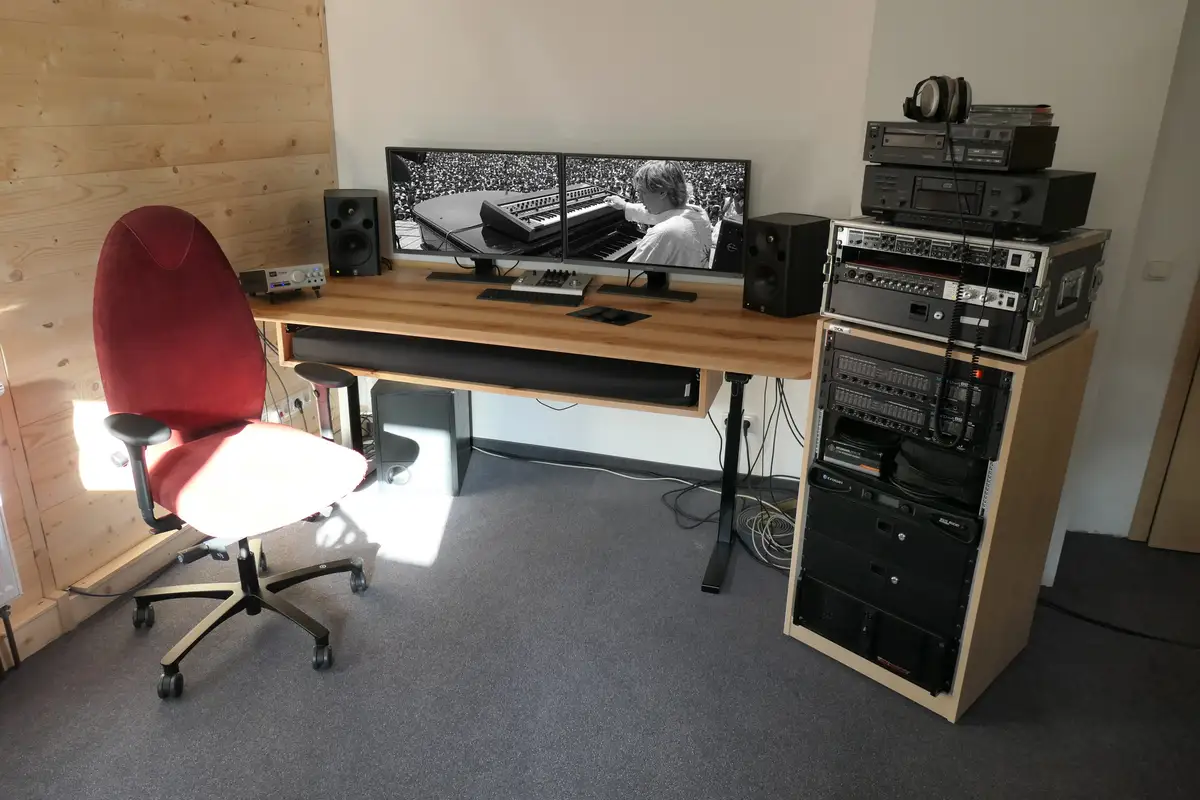 Veredelt wird der höhenverstellbare Musikarbeitsplatz bald mit einem platzsparenden Auszug fürs Keyboard