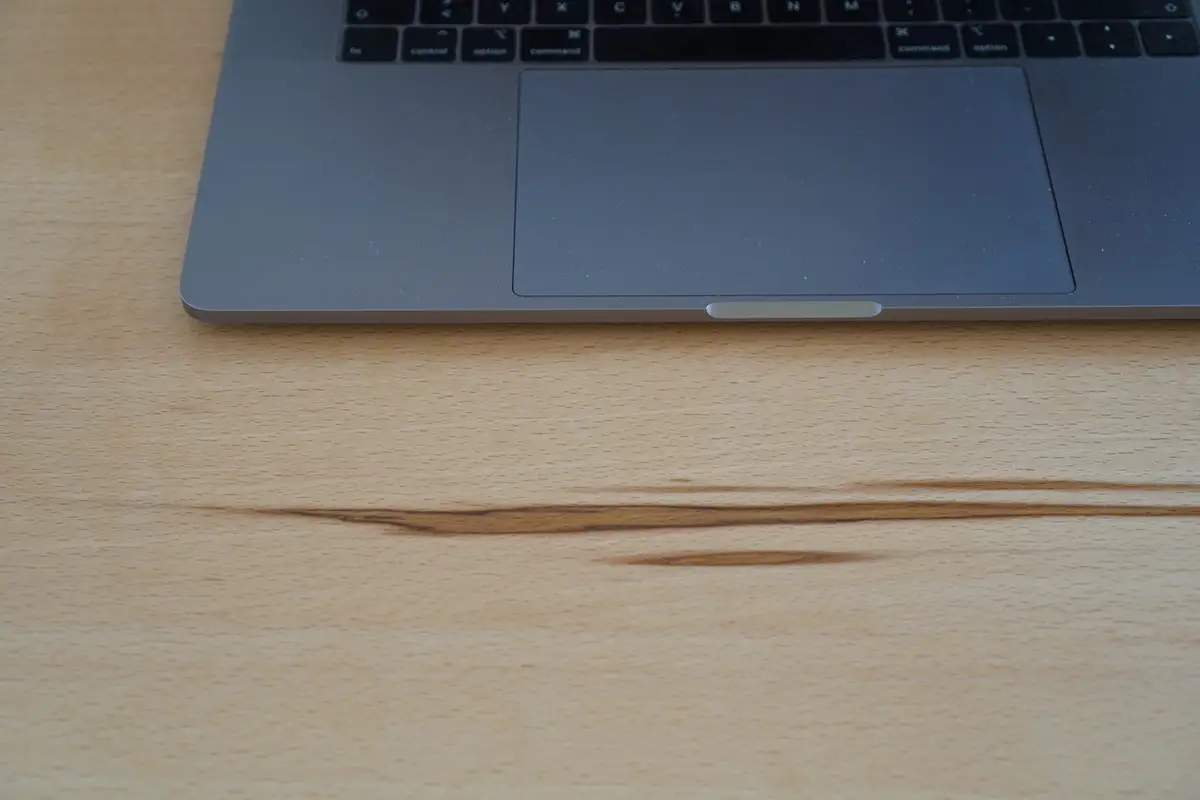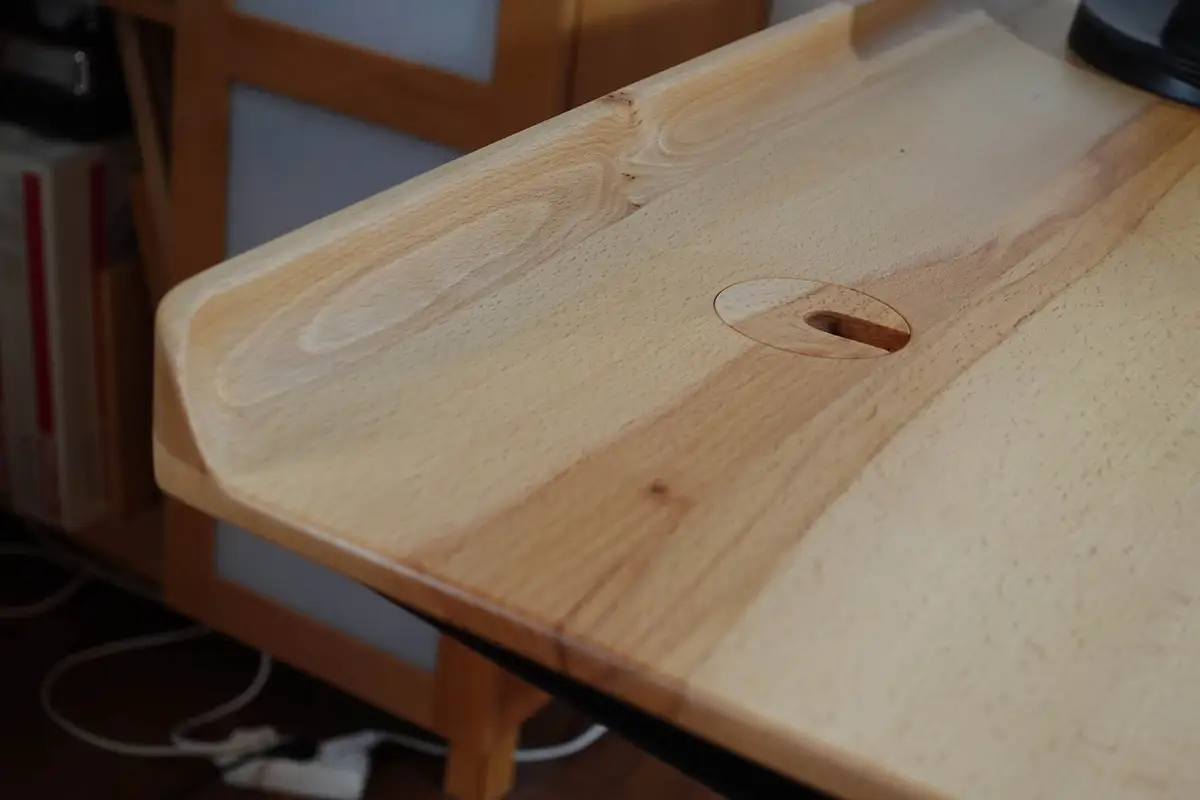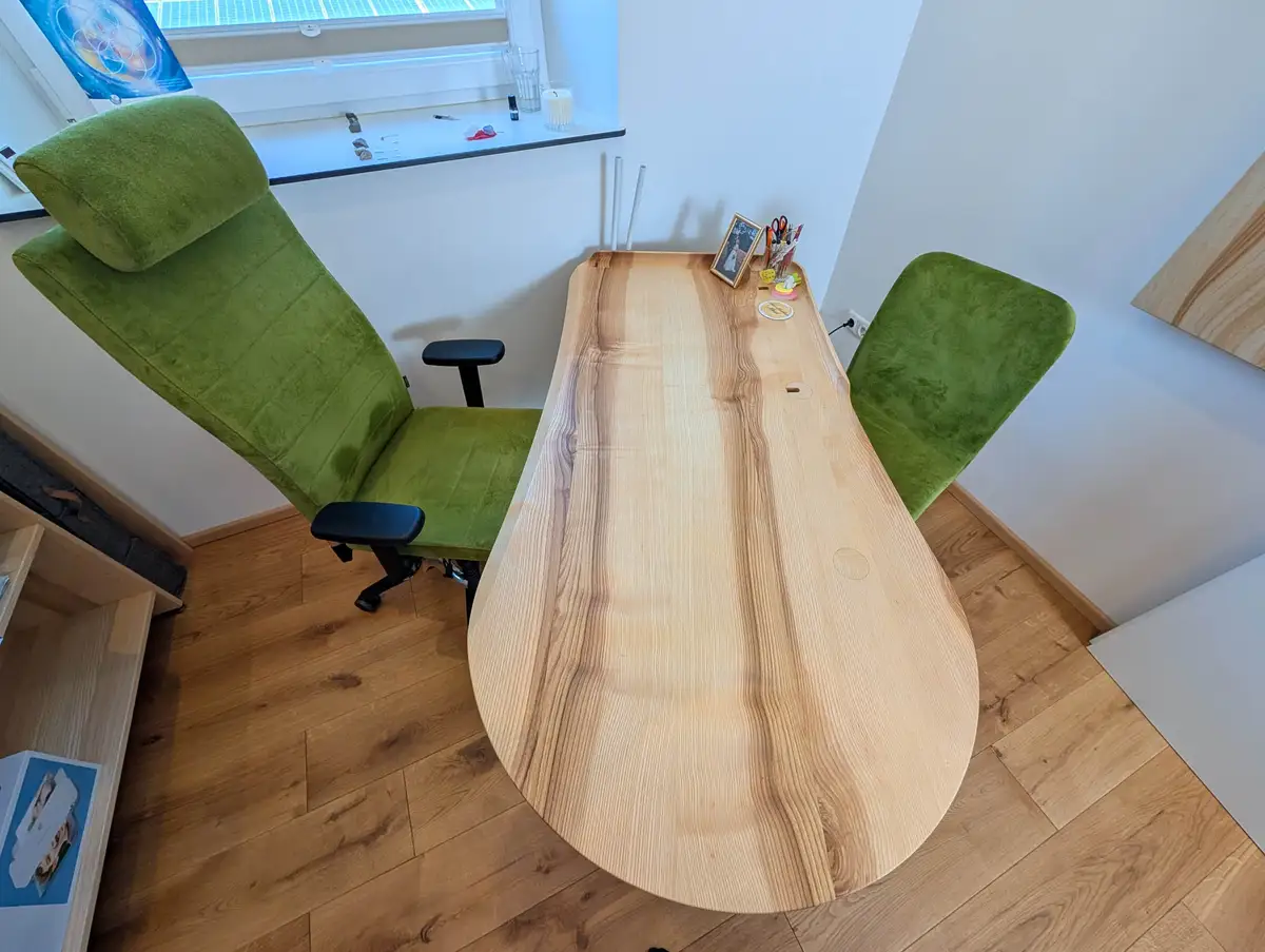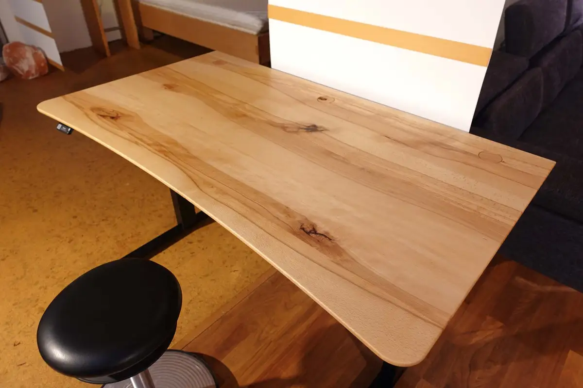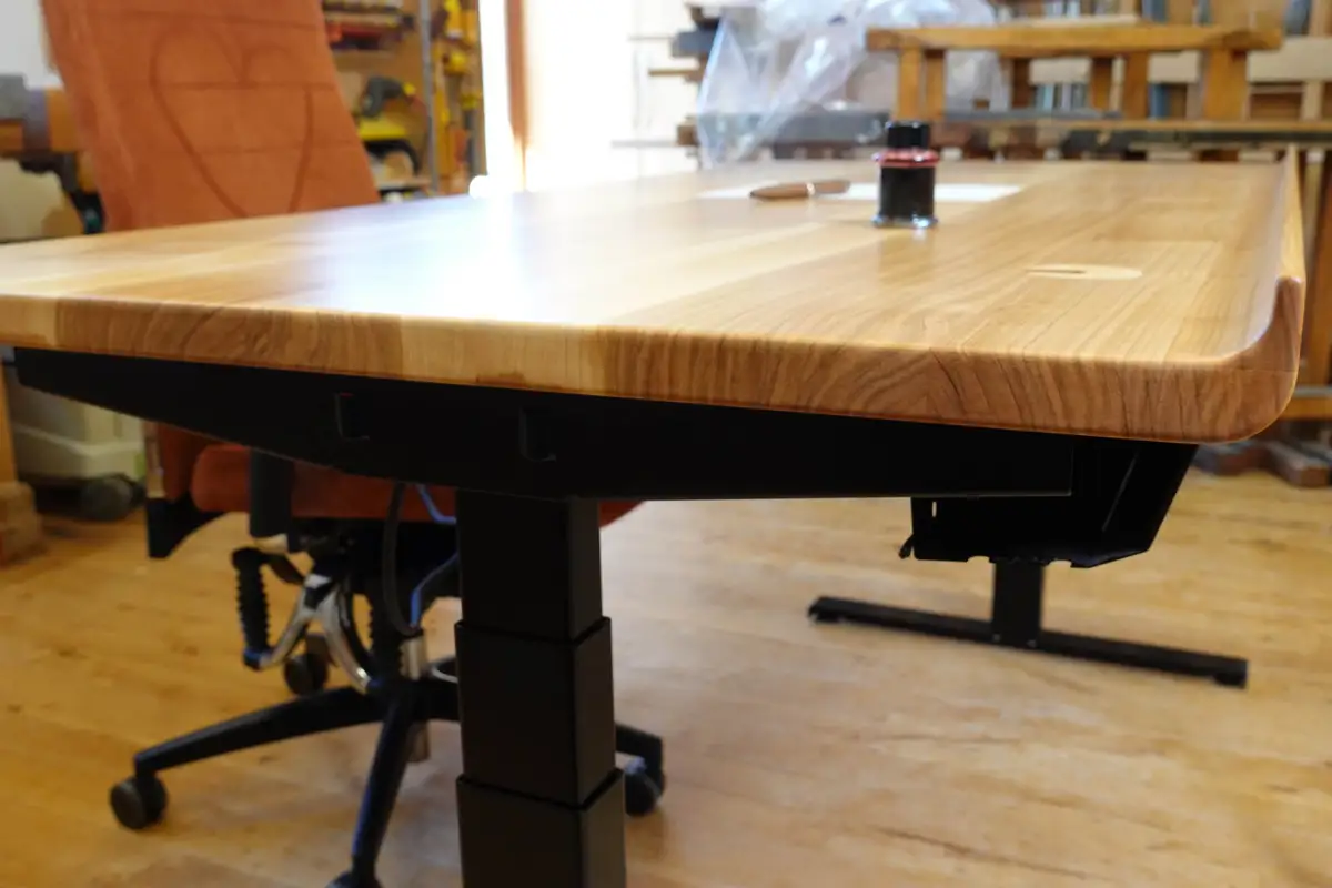 Der Schreibtisch mit der Sonderkante nochmal im Detail