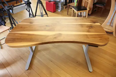 Nussbaumschreibtisch höhenverstellbar in organischen Formen