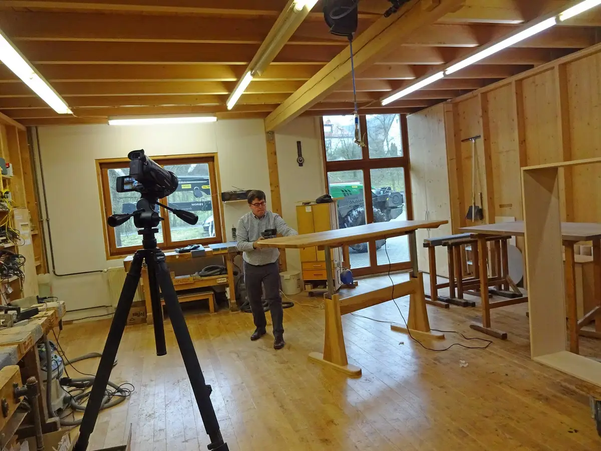 Christian Renner von LINAK fotografiert unseren Schreibtisch