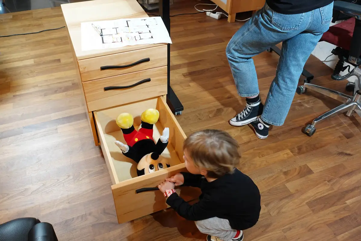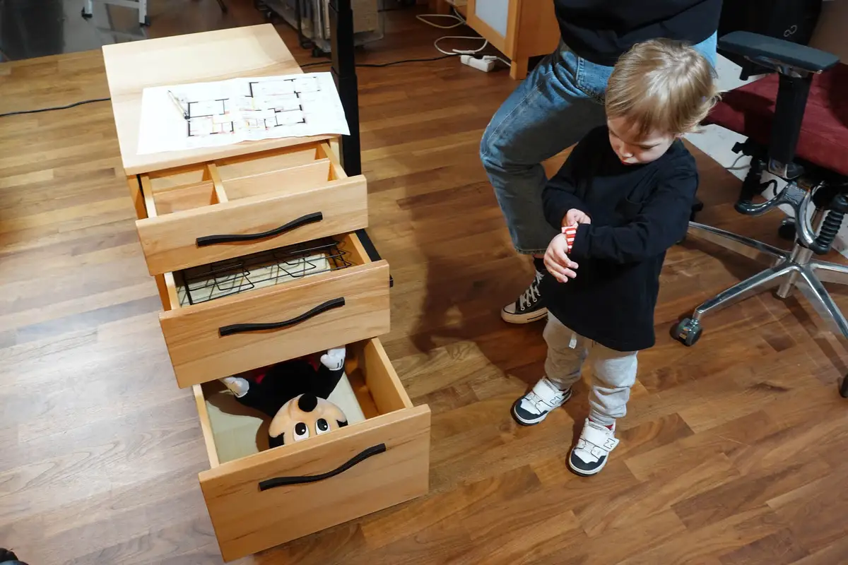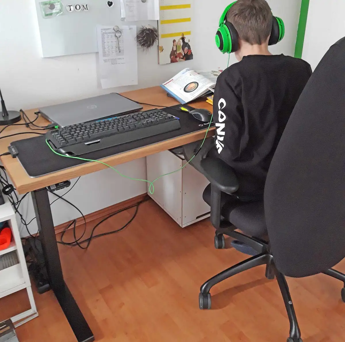 Der große Bruder bekam den ersten höhenverstellbaren Schreibtisch der Familie