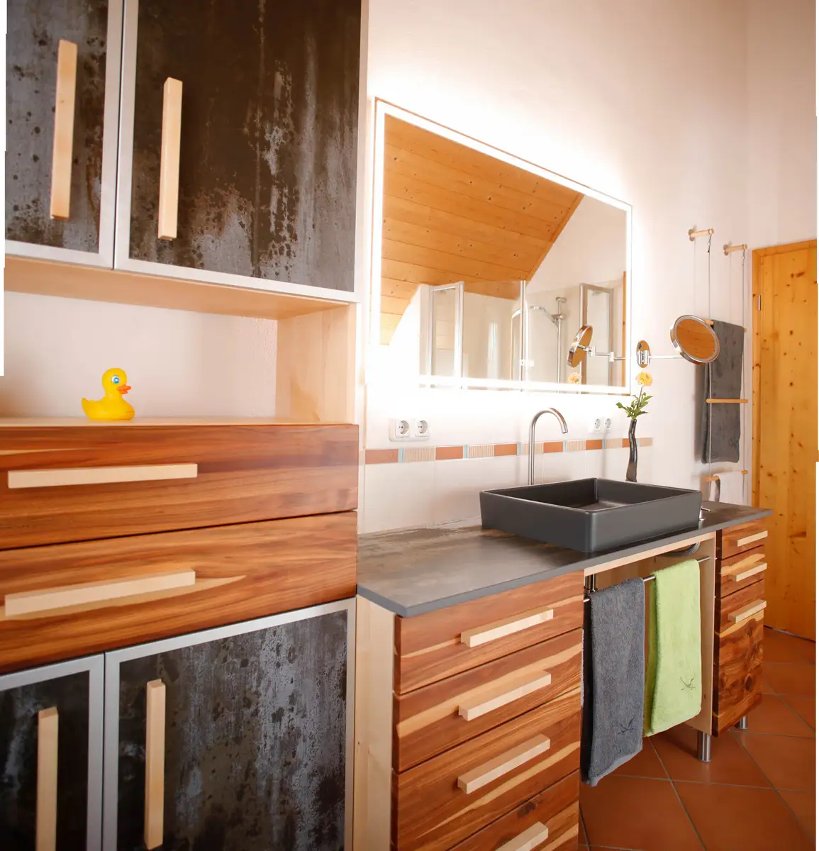 Massivholz-Badezimmer in Zwetschge, Ahorn und Keramik