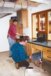 Pünktlich vereinbaren wir einen Montagetermin (unrühmliche Ausnahmen ergaben sich bisher eigentlich nur durch unseren Neubau, Krankheiten oder unsere Vorlieferanten). Natürlich organisieren oder übernehmen wir auch das Verlegen der Fußböden, die Montage der Elektrogeräte oder der Beleuchtung und selbst für das Anschließen der vorbereiteten Wasserinstallation haben wir das nötige Know How und (was in Deutschland ja fast wichtiger ist) die offizielle Genehmigung.