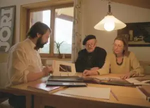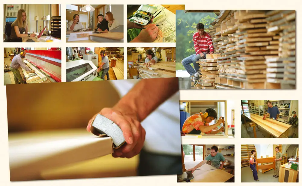 Erste Fragen werden geklärt, ("ja wir bauen Möbel, selbstverständlich nur aus Massivholz, nein, das muß nicht alpenländisch aussehen").