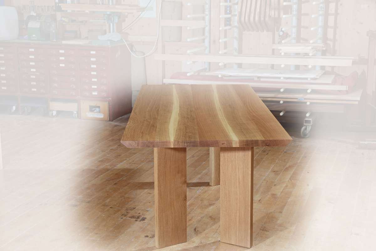 Die Bank ist schon weg, der Tisch ist 180 mal 90 cm groß.
