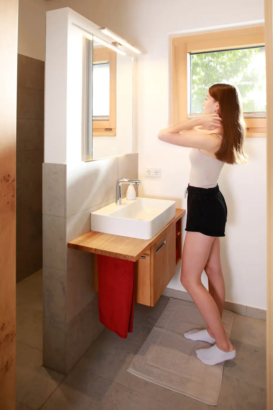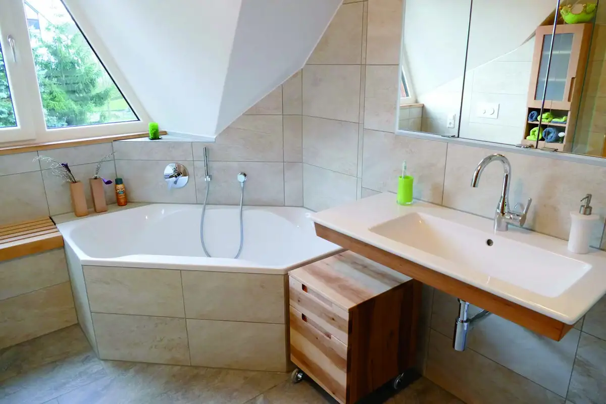 Kleines Bad ganz groß in massiver Buche mit Great Greta