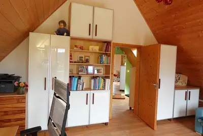 Frau Schön hat neben dem Bad außerdem noch eine wunderbar funktionale Flureinrichtung und ein großzügiges Arbeitszimmer.