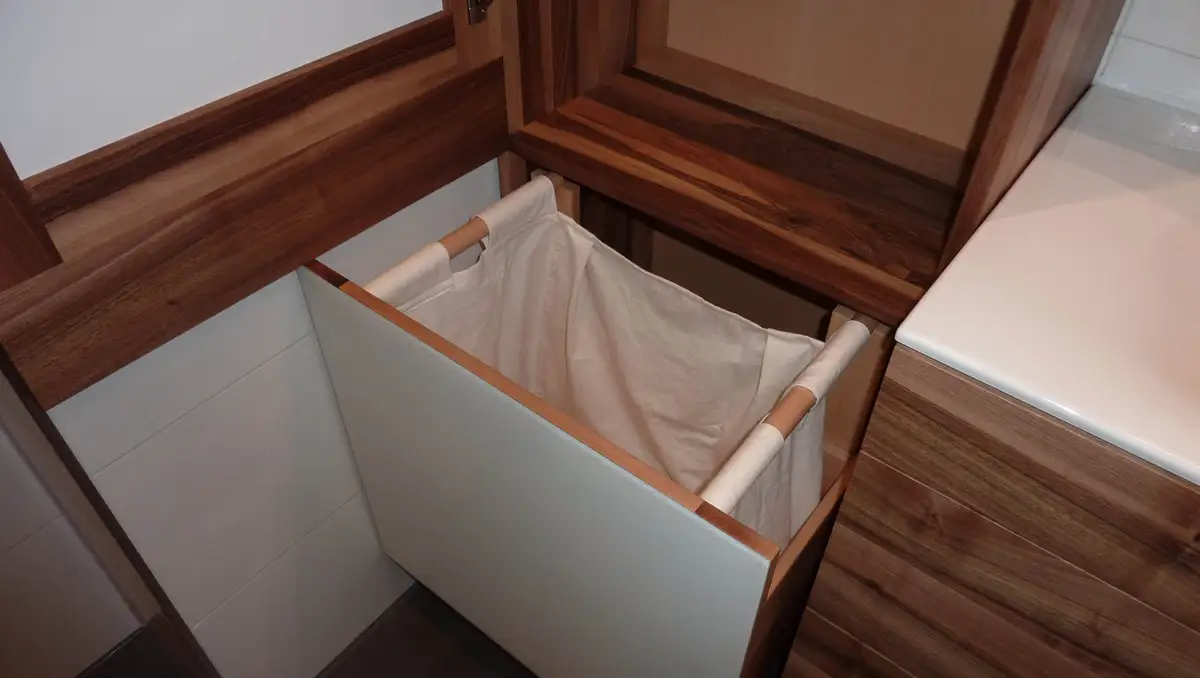 Der Wäscheauszug wird mit dem Fuß geöffnet