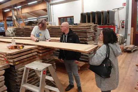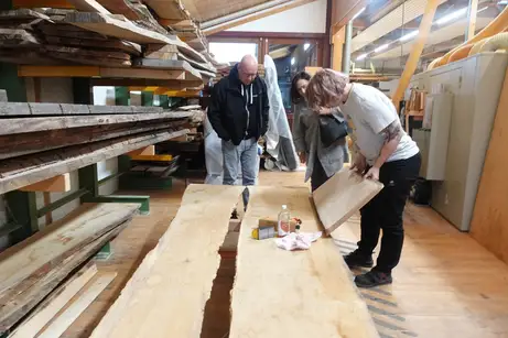Über 80 Prozent unserer Aufträge wickeln wir anhand der Holzart und Vorlieben für Kern- und Splintverteilung (der Kern im Inneren des Baumes ist meist dunkler) und vor allem die Häufigkeit der Astlöcher ab. Manchmal haben wir aber auch besondere Bäume oder besonders interessierte Kunden, mit denen wir tief ins Detail oder sogar die Holzstapel gehen.