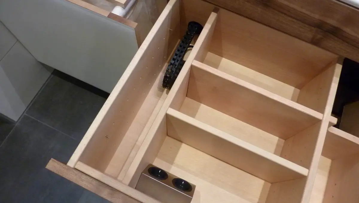 Der Kabelroller für die Steckdose in der Schublade