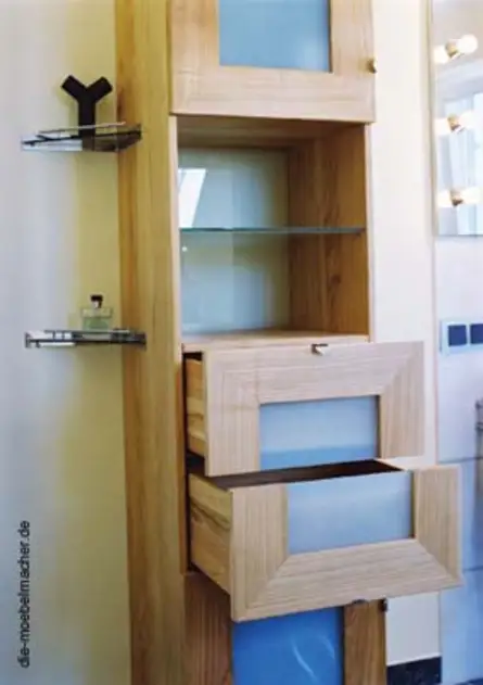 Details (geöffnet) vom Hochschrank aus Kirschbaum