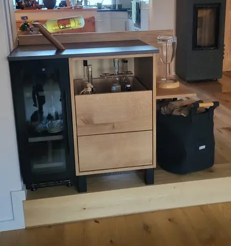 Barschrank mit Weinkühlschrank und Keramikplatte