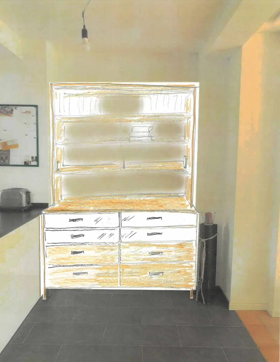 Erstmal während der Besprechung ein kleines Scribble vom Büchermöbel zeichnen